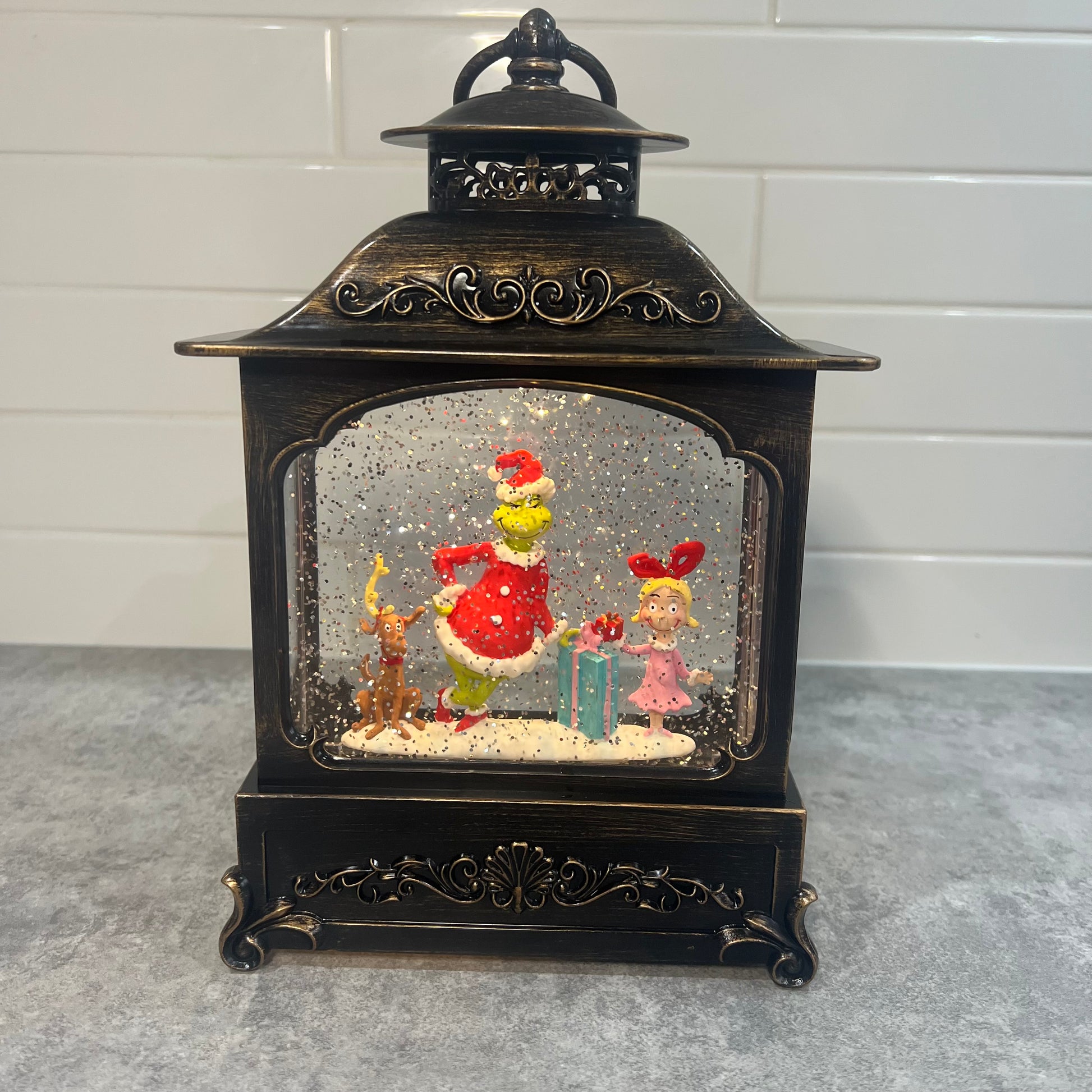Grinch glitter globe with Cindy.